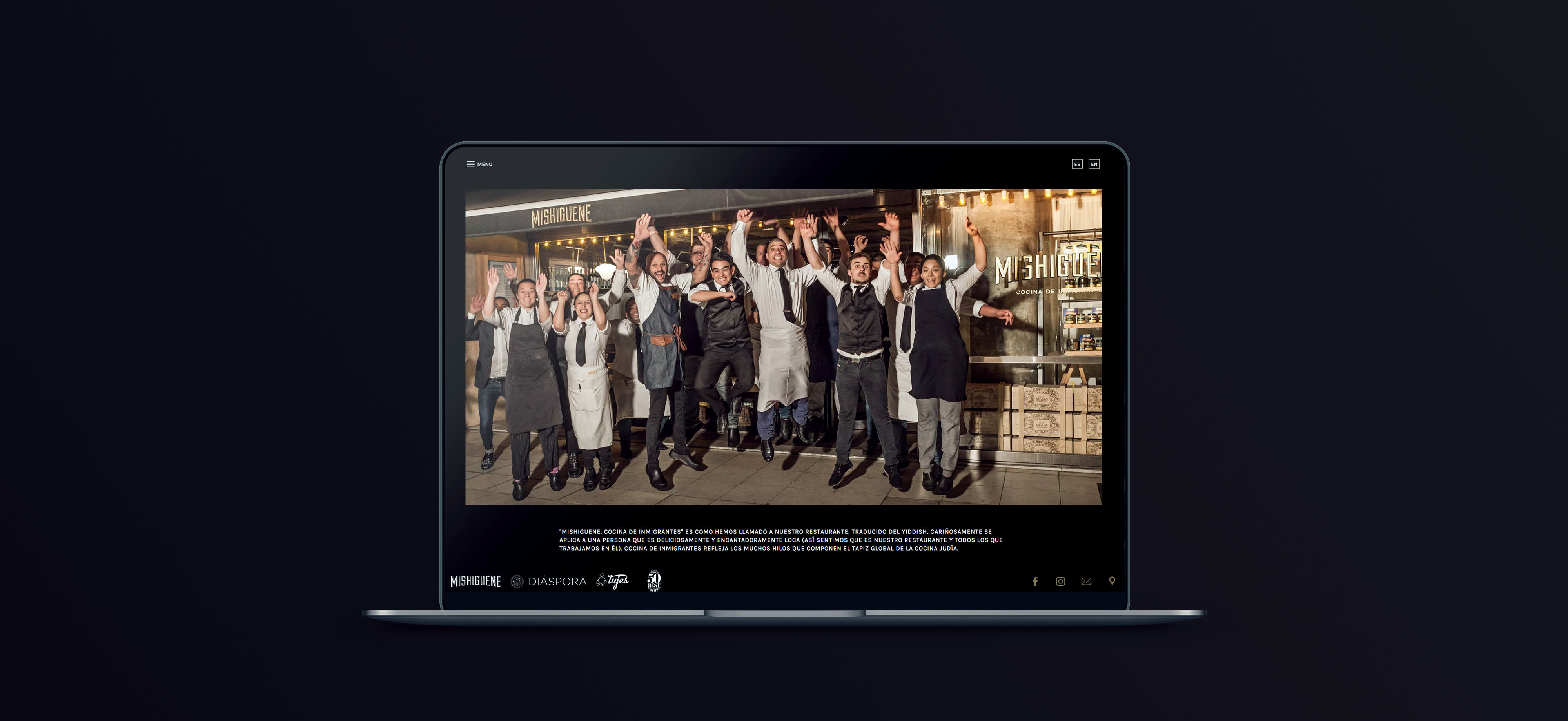 La identidad se adueña de la combinación entre negro y dorado, dandole protagonismo en las piezas gráficas, digitales y en el restaurante.